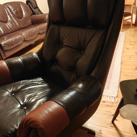Pyörivä ja kallistuva tuoli kallistuvan rahin kanssa. Myydään muuton tieltä.Norjalainen.