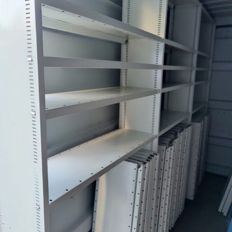 Tarpeettomana jäänyt isot varastohyllyt, pelkää hyllyt