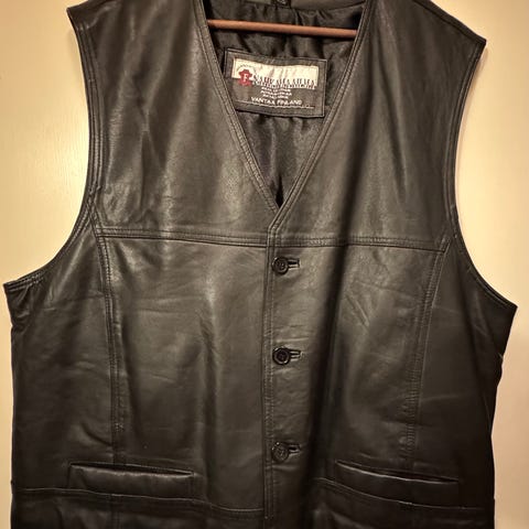 Myydään todella hyvässä kunnossa nahkaliivi, pehmeästä aito nahkasta, kaikki taskun ketjut toimi hyvin. Koko XL. Käytetty pari kerta vaan.Tarjoo..