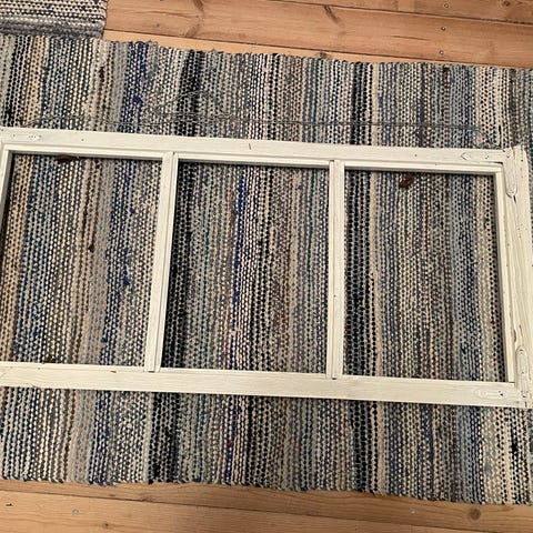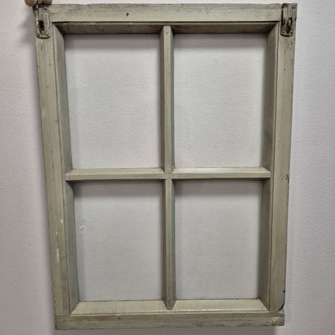Valkoinen vanha ikkunanpoka. Mitat 42,5cm x 114,5cm.