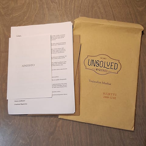 Vuokrataan Unsolved mysteries- pelejä. Pelit ovat kirjekuoressa, ilman mitään merkintöjä ja näin ollen uudestaan pelattavia.
