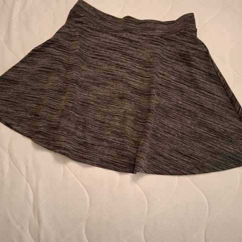 Tummanharmaa, hyväkuntoinen Luhtan hame, koko 36. Vuorellinen, vetoketju/nappi sekä halkio takana. Vyötärön ympärys 74 cm, pituus 53 cm.