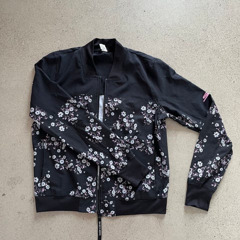 Myydään hyväkuntoinen treenitakki koossa XS. Vetoketju lähtee helposti sijoiltaan, jos sen avaa täysin loppuun asti. Tämän voi välttää sillä, että ei avaa ihan kokonaan. Kuitenkin helppo laittaa paikoilleen sen sijoiltaan lähtiessä. Vetoketjun vieressä pieni heijastava yksityiskohta. Hihansuissa peukalonsijat.