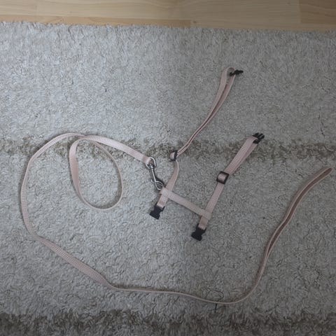 Violetti hihna ja valjaat kanillle. Punottua pientä narua. Ovat uudet. Kaulanympärys ja rinnanympärys on säädettävät. Kanin tai kissan valjaat. Pienelle lemmikille sopiva talutushihna ja valjaat.