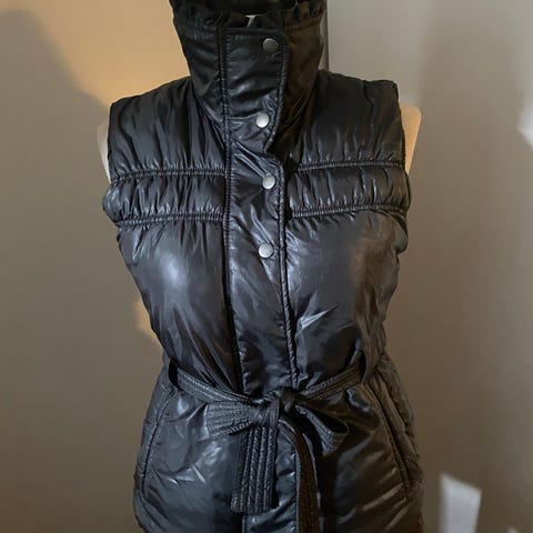 Myydään siisti ja ehjä vuorillinen toppaliivi, koko M. Pystykaulus ja etupuolella leukasuojallinen vetoketju. Piilovetoketjulliset sivutaskut.