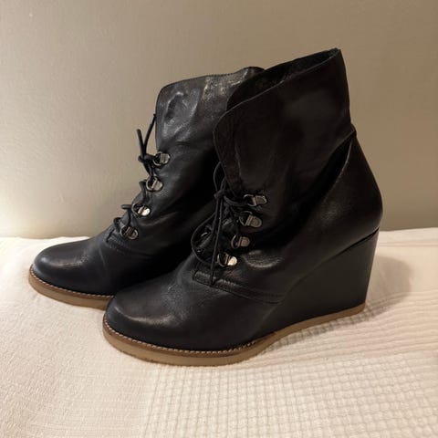 Mustat Kiomi kiilakorkokengät, koko 40 (melko kapea malli joten menee myös kokona 39). Käyttämättömät. Koron korkeus 9,5cm.