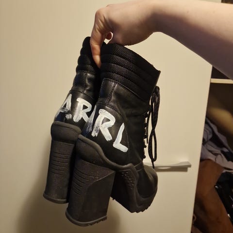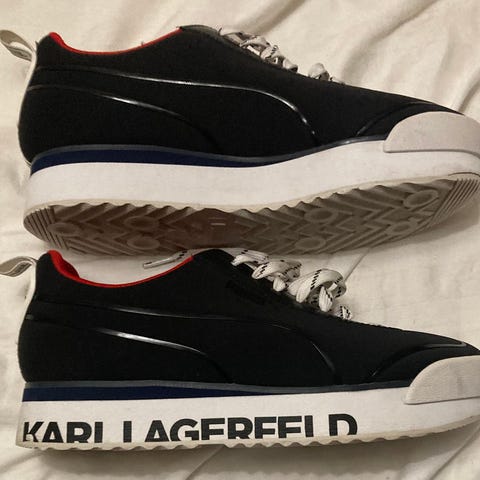 Hienot kengät. Karl Lagerfeld. Paksu pohja. Takana on leveä tarra. Kantapää on auki