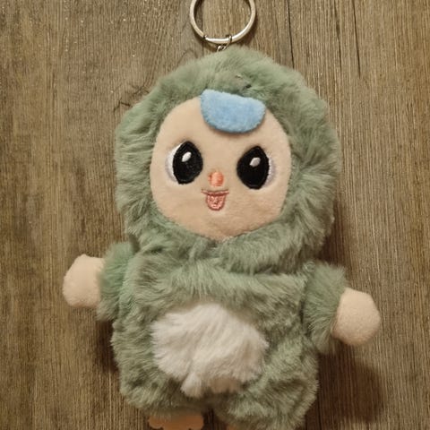 Pehmoinen avaimenperä,jonka voi laittaa roikkuun mihin vain.