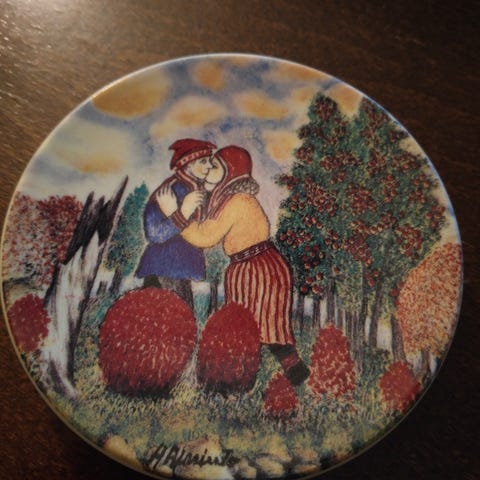 Uudenveroinen Mary Griersonin kuvittama seinätaulu. Halkaisija 12cm.