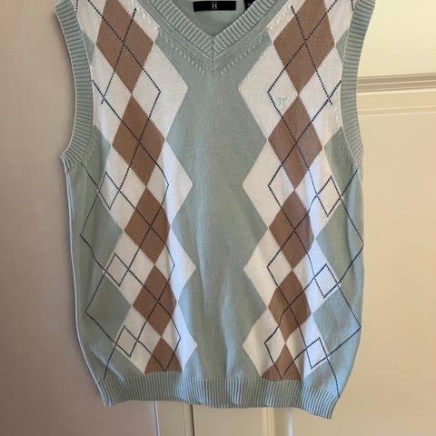Toisen liivin etupuolella on ruutukuvio. Ruutujen värit ovat harmaa, valkoinen ja musta. Tämän liivin tausta on kokonaan harmaa. Tämä liivi on merkiltään House.