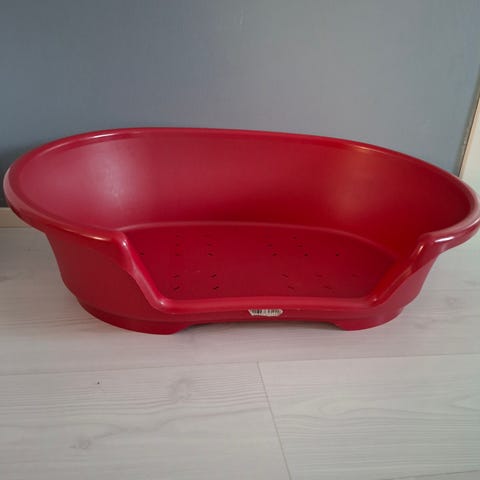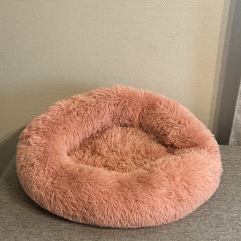Lähestulkoon käyttämätön. Pesässä on käyty pyörähtämässä, mutta ei nukuttu. Sopivin n. 2 kg koiralle tai pienelle kissalle. Pohjan halk. 35 cm. Takaa korkeus 32 cm. Etureuna keskeltä n. 5 cm. Pesän aukon halkaisija n. 22 cm. Hyvin pehmeää materiaalia.
