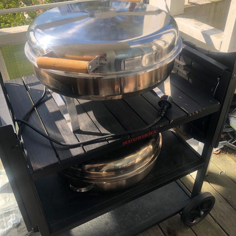 Myydään muuton vuoksi Muurikan erittäin vähän käytetty sähkö-grilli pyörällisellä vaunulla, jossa taitettavat pöytäsiivekkeet ja pidike grillin kannelle. Mukana Muurikan omia alumiini-alustoja, jotka keräävät tippuvat rasvat kätevästi. Settiin kuuluu niin ikään Muurikan muurinpohjalettupannu suojapussissa, sekä auringossa virttynyt grillin suojapussi. Lisäksi uudet: lasta, silikonikinnas, sekä grillin puhdistustyökalu. Grillissä uusittu vastus, jota käytetty kahdesti.