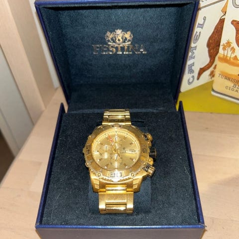 Jonkin verran ajan patinaa kellossa. Tehdaspakkaus.