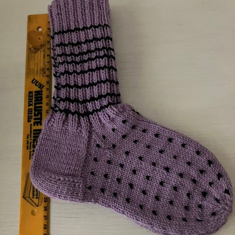 Myyn uudet 7-veljestä langasta (75% villaa 25% polyamidi) neulotut sukat. Pesu40ast. Terän pituus 25cm ja leveys 11,5cm. Hintaan sisältyy postikulut.