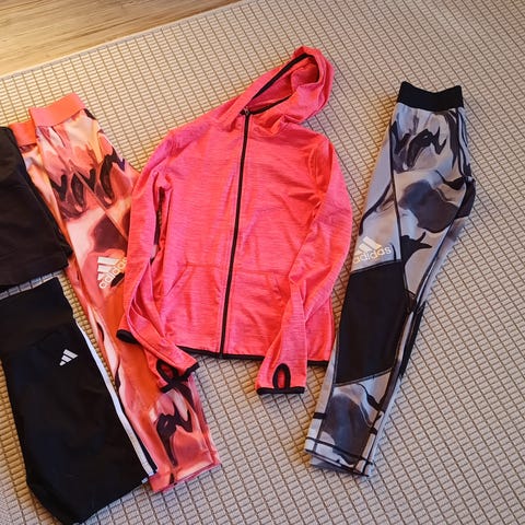 Sopii vaikka koulun liikuntatunnille. 2 toppia, huppari ja lenkkarit, yhteishinta 30 euroa. Voin myydä erikseenkin.
