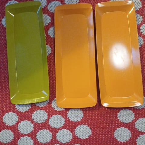 Myytävänä 5kpl Fiskars Fiskamin melamiinilautasta. Halkaisija 15,5cm. Yhteensä 10e.