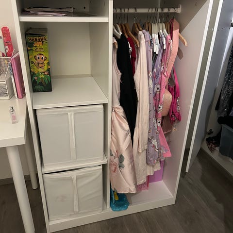 Kunto hyvä, muutama pieni kolhu etureunassa (kuva). Säilytetty lastenvaatteita, myydään että saadaan lisää tilaa barbileikeille 😄