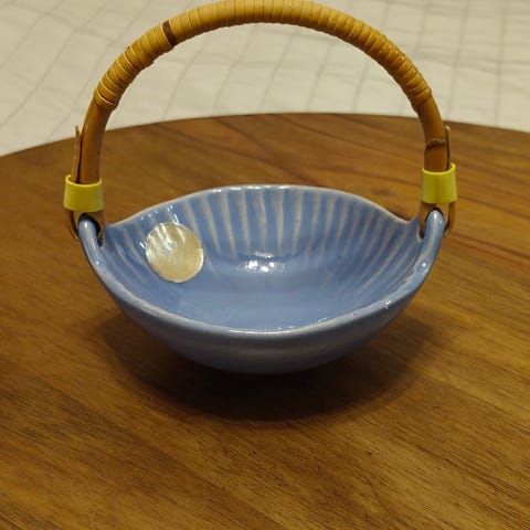 Irja Suovan 40-50-luvun tarjoilukulho. Halkaisija 27cm, korkeus 7cm