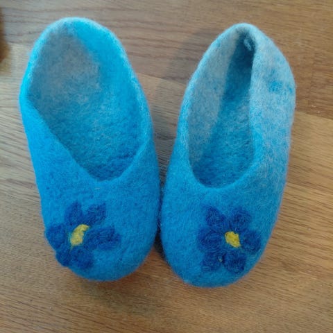 Myynnissä söpöt töppöset joissa jalkaterän mitta 12 cm eli noin koolle 19 20 . Vaalea ja sinapin keltainen väritys.