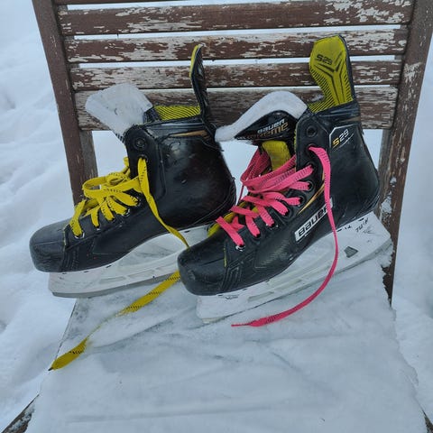 Jääkiekon pelaajalla ollut hetken käytössä, ostin itselle kuvissa näkyvässä kunnossa, mutta ei ollut passelit omaan jalkaan.