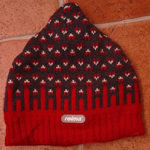 Lämmin Reiman pipo, koko 48/50cm, mutta tiukempi kuin toiset tätä kokoa, sisämitta mittanauhalla noin 45cm. Päällys 100% villaa, sisus fleeceä.