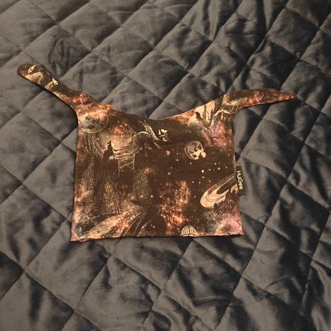 Vähäisellä käytöllä ollut. One size. Aika venyvä ja lämmin materiaali. Menee pieneen kuin isompaankin päähän. Pesty.