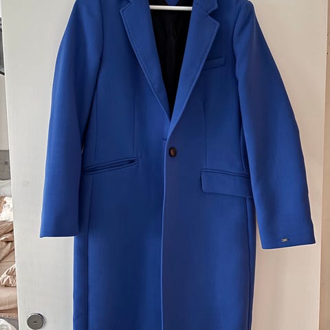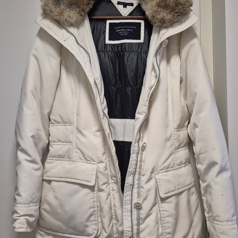 Erittäin hyvässä kunnossa mukaanlukematta vikan kuvan pientä virhettä (ei huomattava). Koko 8, menee S-M kokoisille. Oma pituuteni on 163cm ja takki ylttää polviin asti/