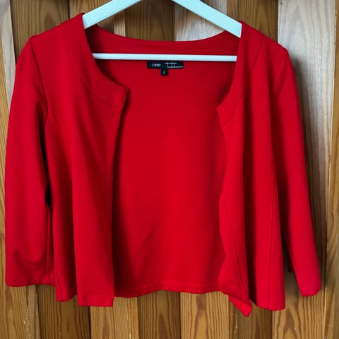 myisin oheisen kivan viskoosijakun/liivin, kiristettävä koristetupsunauha vyötäröllä, voi toki ottaa pois,kokomerkintä S, on 36-38, sievä yläosa/olkapäät,koristeiset, on Puistolassa, mahdollista postittaa