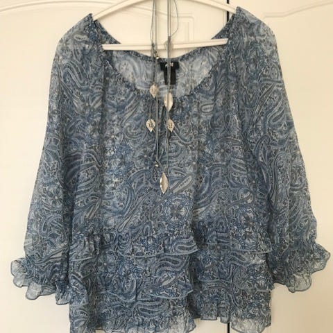 Todella hyvässä kunnossa oleva ihanaa silkkistä kangasta oleva paita, joka sidottava keskeltä.