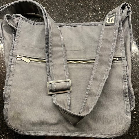 Ulkoreunoissa pikku taskut, sisällä kaksi vetoketjutaskua ja kaksi pientä lokeroa.