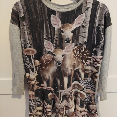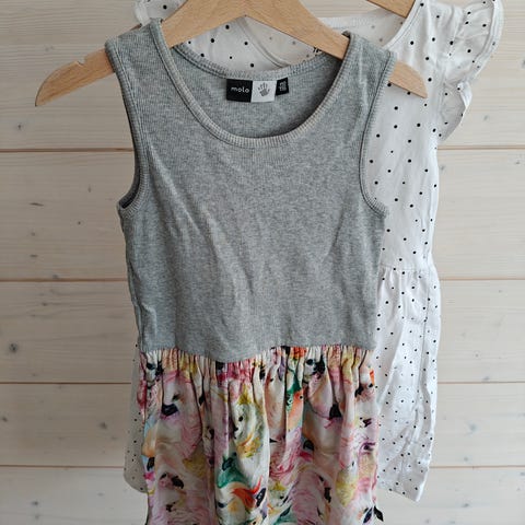 Värikäs kukka-eläinkuosinen Molon mekko koko 104 cm, käytetty vielä 116 cm koossa. Hinta 10.