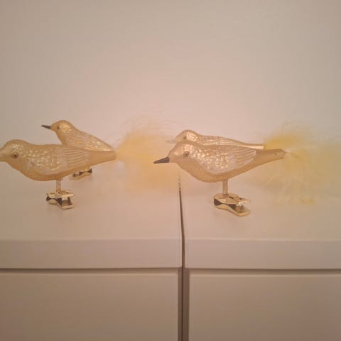 Joulukoristeet on päällystetty 24 karaatin kullalla. Koristeisaa on kullanväriset narut ripustamista varten.