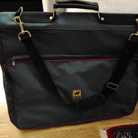 Casual merkkinen pukupussilaukku. Monta vetoketjutilaa, kantohihna ja kantokahva, koko 54 cm x 58cm x n12 cm (K x L x S ). Iältään vanha, mutta ei juuri käytetty.