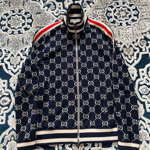 Myydään uuden veroinen hieno Gucci Webbing-Trimmed Shell and Washed-Cotton Track Jacket koossa 52, vastaa XL kokoa.