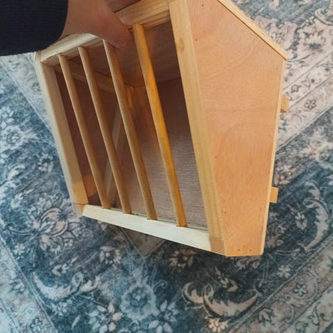 Täytä tyyny heinällä ja sulje nepparit, varmista että heinä tulee verkosta läpi ja tarjoile.