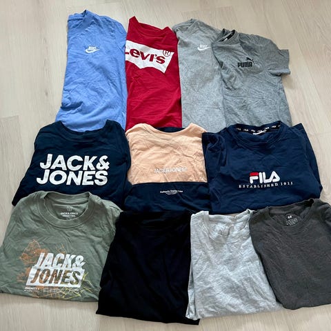 Poikien t-paitapaketti, koko n. 152cm(Nike,Jack&Jones, Fila, Levis, Puma ja H&M)