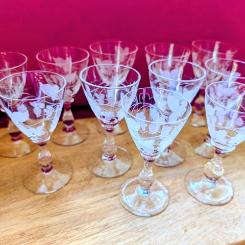 Viininlehtikaiverrus. Korkeus 6,7cm. 4 kpl, virheettömiä.