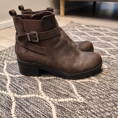 Naisten nilkkurit, vuoreton. Valmistusmaa Espanja. Koko 39. Koroissa kulumaa.