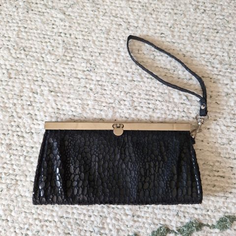 Musta samettinen kirjekuori iltalaukku olkahihnalla + hiuspanta sametti ruusukoristeella