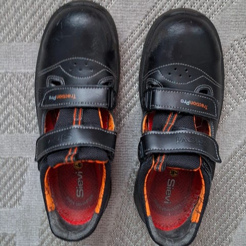 Hetken käytössä keittiötyössä olleet Sievin turvakengät turvakärjellä. Koko 37 (3 1/2), mutta ovat reilua kokoa. Kunto hyvä ja siisti.