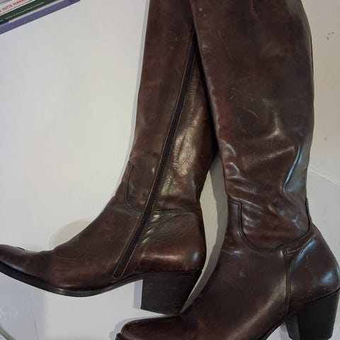 Naisten nahka saapikkaat paksulle pohkeelle 41