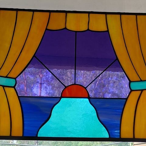 Hieno, harvinaisen ja poikkeuksellisen iso tiffany-lasipaneeli