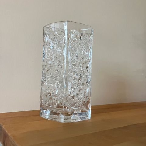 korkeus 25cm, halkaisija 10,3x7,4cm, 1274g, kirkas, alapohjassa jälkiä pöydällä siirtelystä, ehjä ja kaunis.