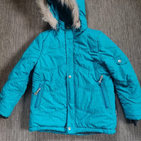 Hyväkuntoinen H&M-merkin toppatakki. Tummansininen, koko 122 cm. Hupun sisus ihanan pehmeää materiaalia, huppu on irroitettava. Takkiin lisätty 1 heijastinpaikka (sydämen mallinen) ja taakse helmaan ommeltu heijastinnauhaa.