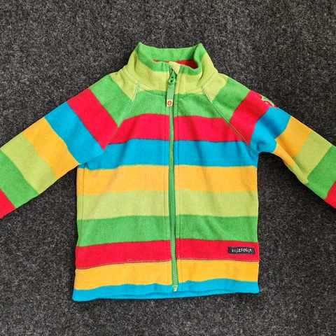 Värikäs Villervalla fleecehaalari kokoa 92, hupullinen, vetoketjy uusittu.