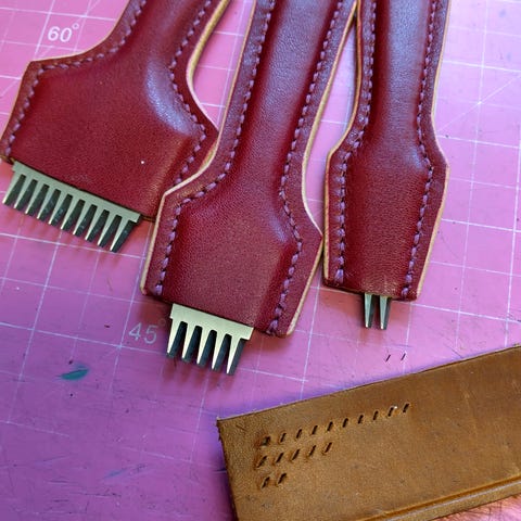 Reikähaarukka-pihdit, reijitys, nahka ompelu