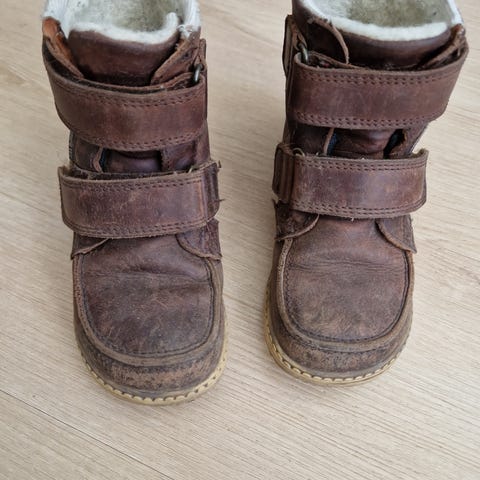 Anguluksen nauhalliset talvikengät koossa 28. Kengät ovat nahkaa ja niiden sisällä on lämmittävä villavuori. Kengät saa sivusta vetoketjulla auki, eli ei tarvitse avata ja solmia nauhoja. Olleet lapsella kauppakenkinä. Kulumaa on jonkin verran etenkin kenkien sisäkärjissä (kts. kuvat), silti edelleen siistit.