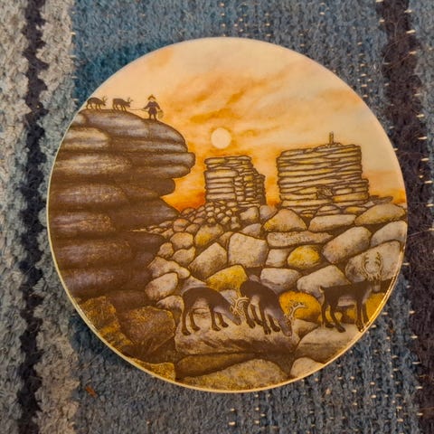 Arabian seinälautanen Kivipaadet ilta-auringossa numero 38, vuosi 1988. Suunnittelija Andreas Alariesto. Hyväkuntoinen.