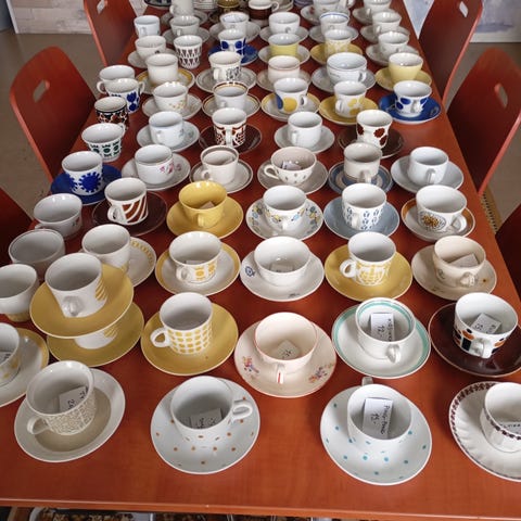 Myydään Arabian kahviastiasto, yhteensä 29 kahvikuppia ja teevatia. Ehjiä ja säröttömiä.