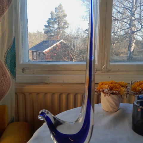 *Hakusanat: Keräily, taidelasi, lasiesine, lasikoriste, lasi, lintu, joutsen, sisustus, 70-luku, Suomen kansallislintu, lasitaide, Italia, Murano, hand made, Italy *